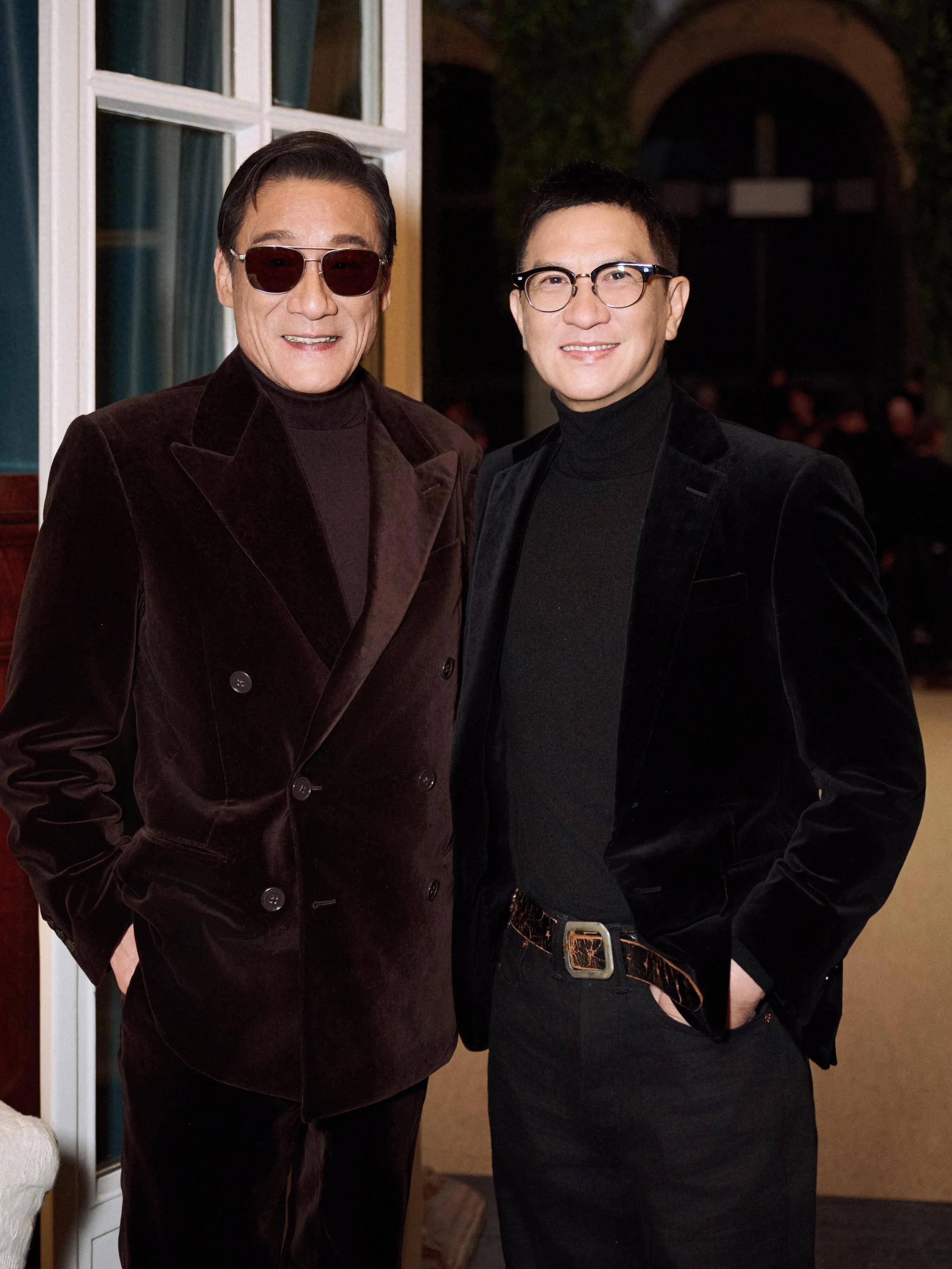 在拉夫劳伦的米兰男装秀上,张家辉和梁家辉同时出现在秀场。张家辉身穿黑色丝绒西装外套,戴着黑框眼镜很稳重成熟。梁家辉则穿着酒红色西装套装,戴着黑色墨镜,他痞帅痞帅的,两位法拉利都更帅气了。