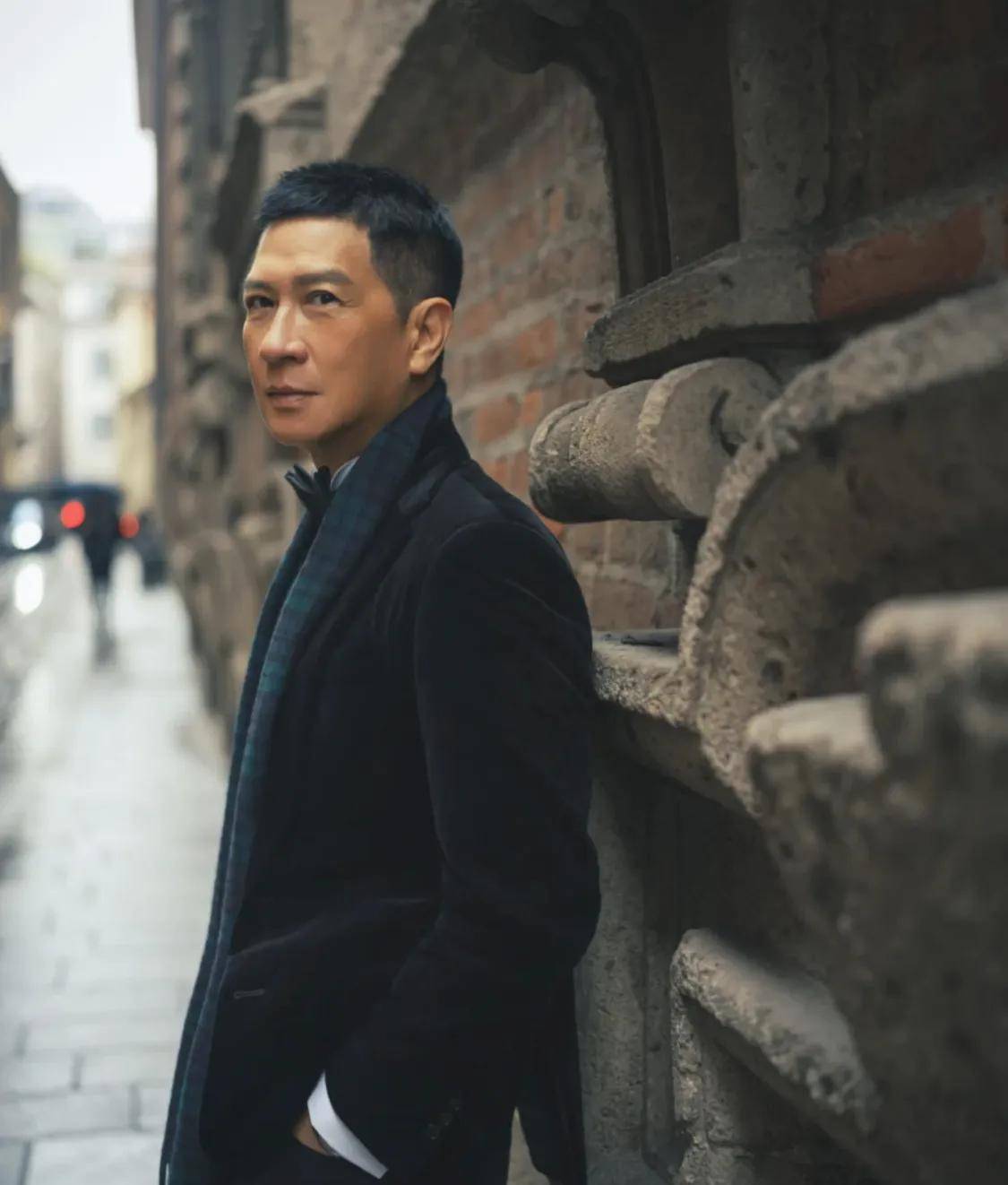 61岁的张家辉脸上一点岁月的痕迹也没有,他和年轻时一样帅气,他穿上拉夫劳伦很时髦也很显贵气。