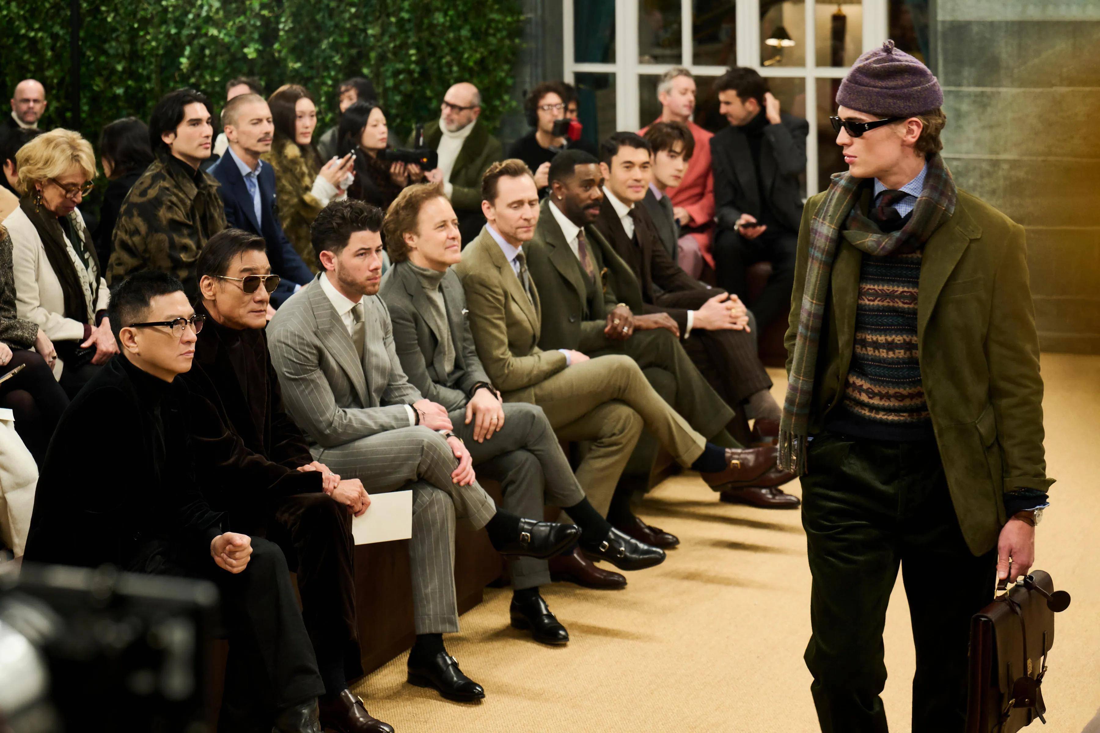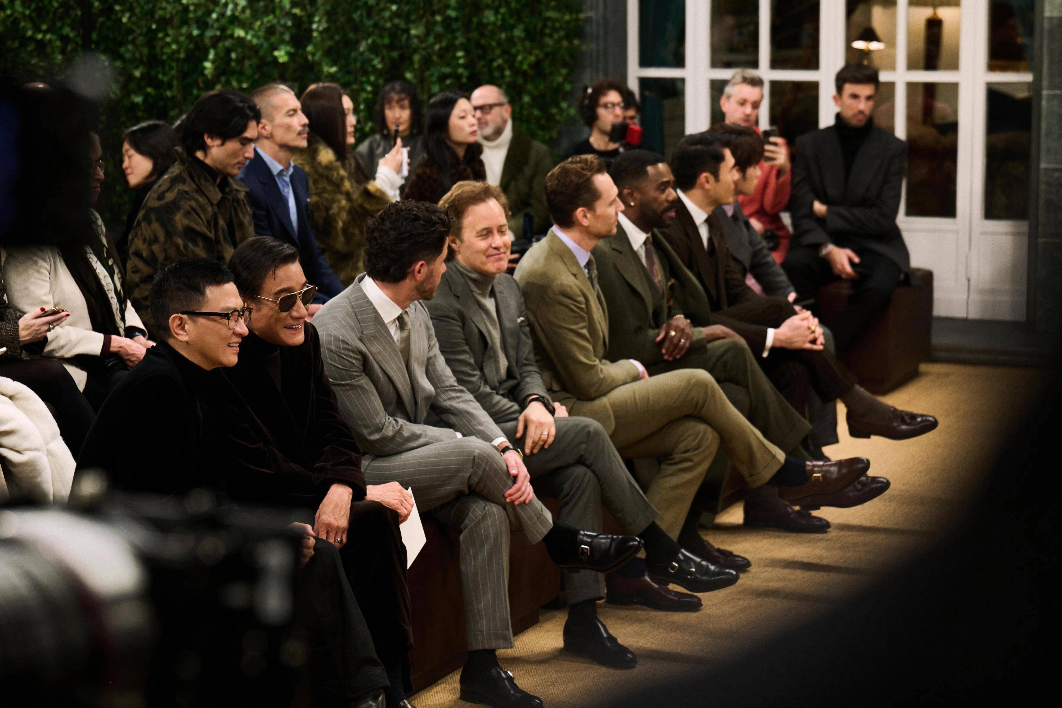 看秀的时候,张家辉和梁家辉坐在一起,他们聊的很开心,在这一排还看到了抖森,这一排穿着拉夫劳伦的男人很有魅力。